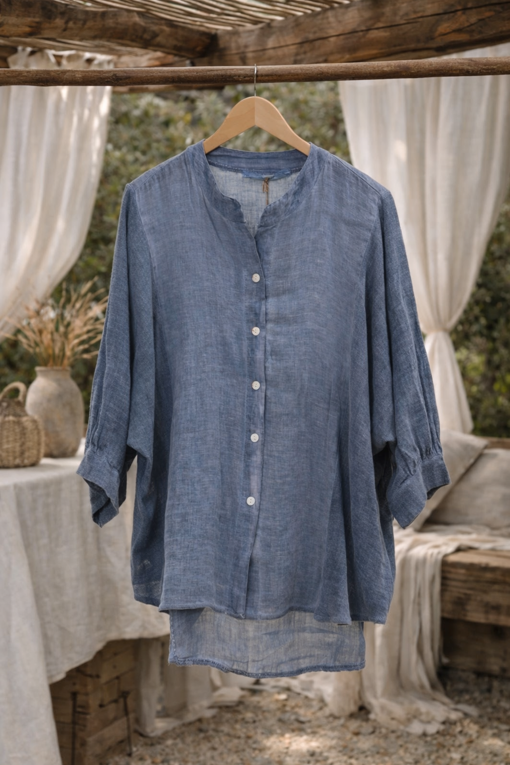 Lightweight white linen blouse inspired by French effortless style. Breathable, relaxed, and perfect for California days, this timeless piece blends natural elegance with everyday comfort.